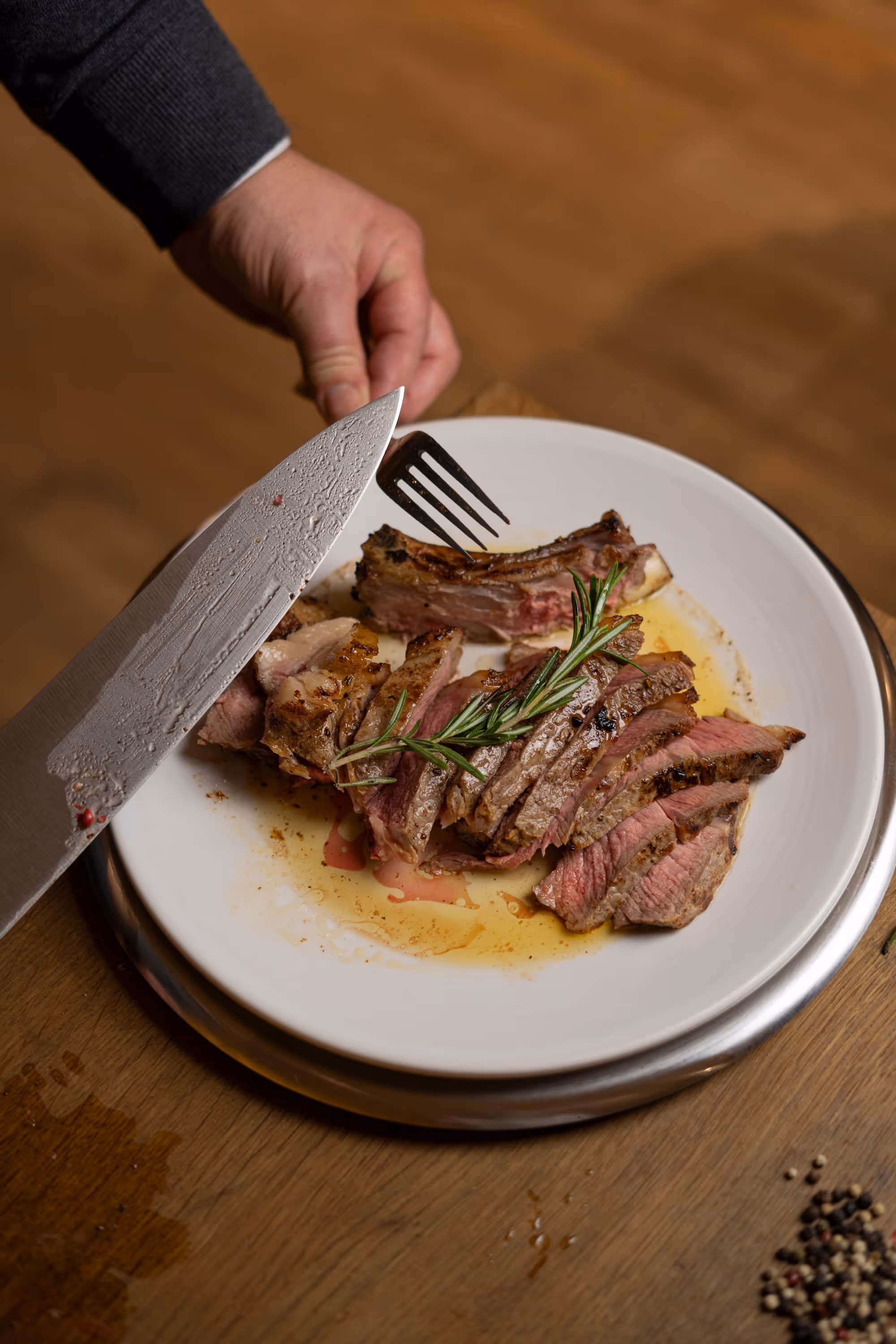 Filetto di vitello (160 g) al brandy e pepe rosa | patate Anna allo speck | verdure